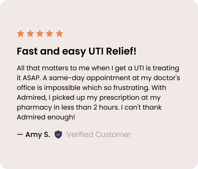 There is no one-size-fits-all when it comes to medication. Your Admired doctor can help you understand the best UTI meds based on your medical history.
